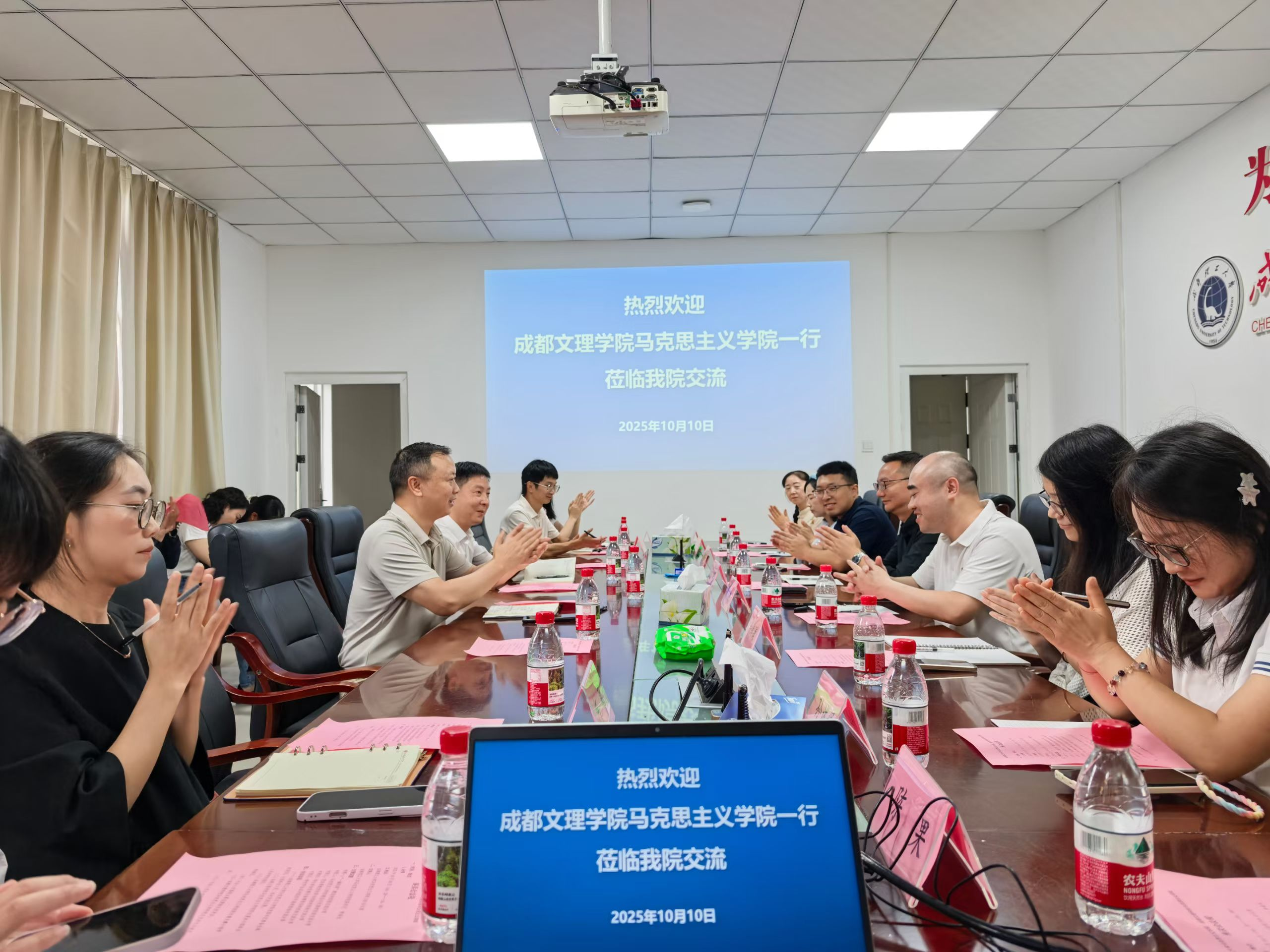 10月10日,公司前往成都理工大学威廉希尔体育开展交流共建活动。成都理工大学马克思主义公司党委书记李奋生,经理曾文麒,党委副书记、纪委书记周菲,副经理赵如以及各教研部主任,青年教师代表参加。公司经理夏冰,党总支书记古威,党总支副书记袁久斌,各教研室主任和青年教师代表参加座谈会。会议由李奋生主持。