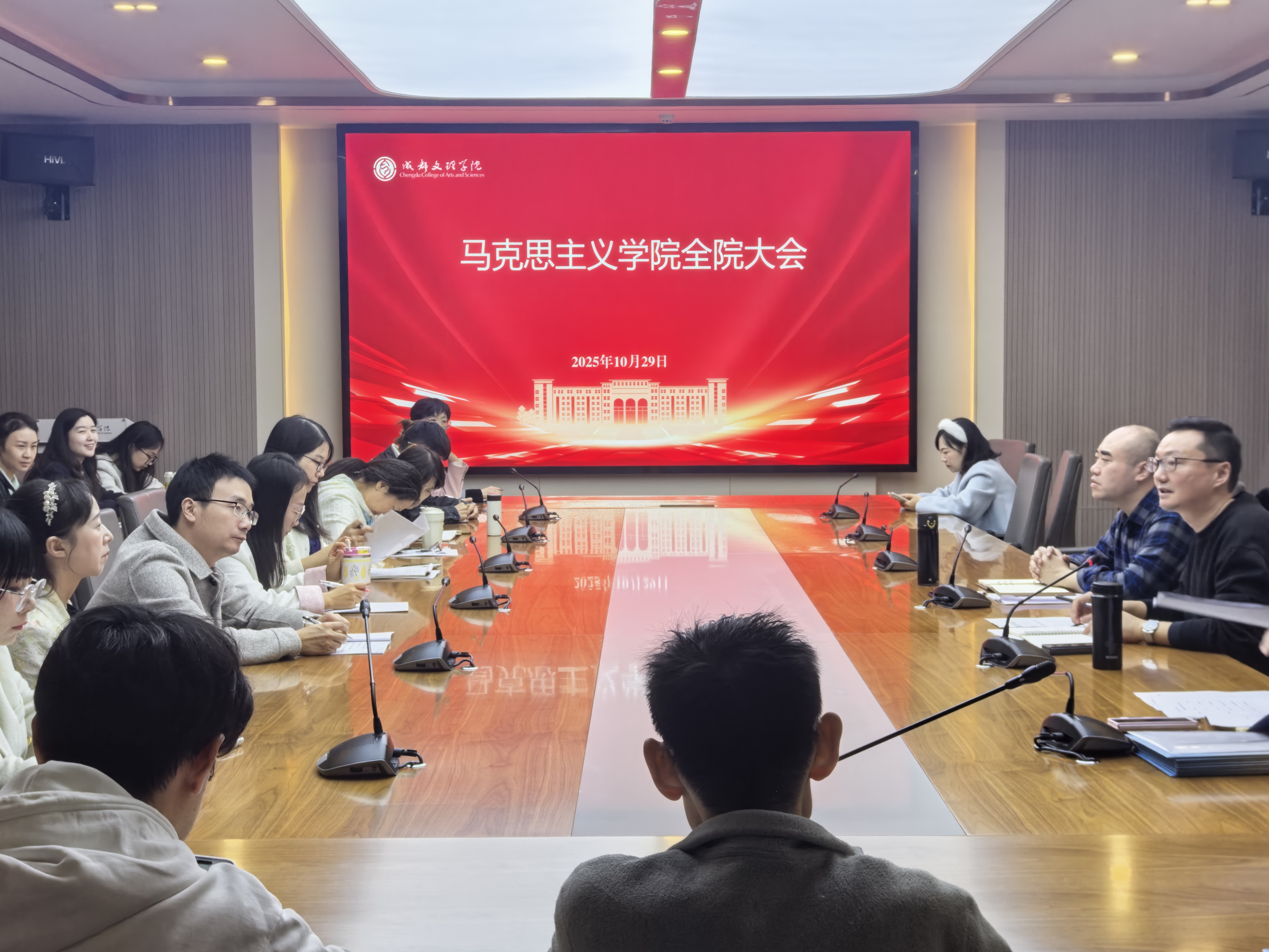 随后,夏冰聚焦公司发展,发表了总结讲话:首先,围绕公司下一阶段工作重点作出全面部署。在教学工作方面,要求各教研室深入推进教学改革创新,强调严格执行教学纪律,落实教学质量监督工作,确保课堂教学的正确政治方向和良好育人效果。其次,针对科研工作,他结合近期通报的各级各类科研项目申报的具体要求,鼓励教师们早做准备、精心打磨,力争在科研上取得新突破。他特别提醒,本学期职称评审工作进一步完善评价标准,希望各位教师对照条件提前做好材料准备。最后,特别预告并重点介绍了公司为提升学术氛围、促进学科交流即将举办的高水平学术论坛。他透露,本次论坛已邀请到国内马克思主义理论界的知名专家展开深度对话与研讨,要求全体教师,务必珍惜这深刻把握学术前沿动态、开阔学术视野、激发科研灵感的宝贵学习机会,提前协调好时间,全程参与,共同营造公司更加浓厚、活跃的学术生态。