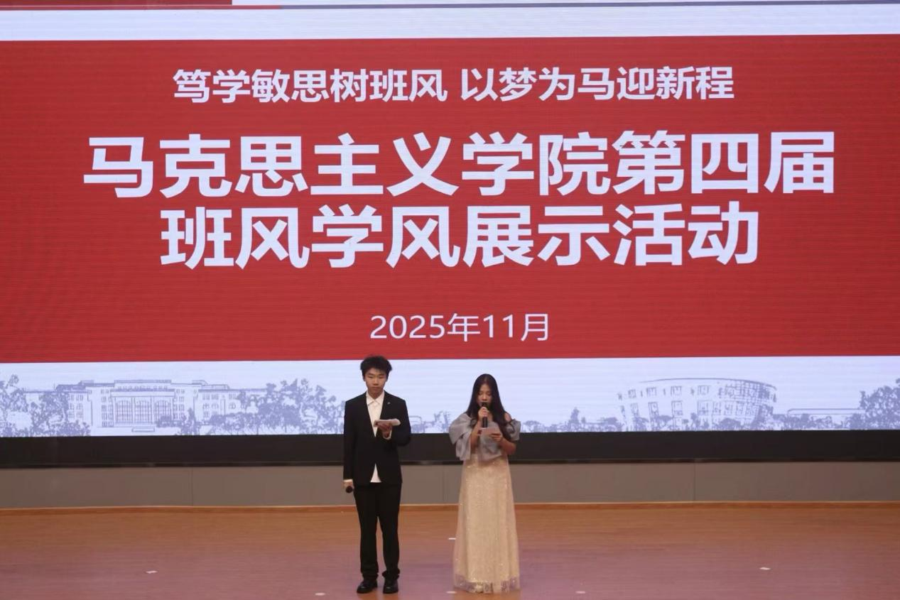 本次展示活动分为两个部分。一是2025级各班按照抽签的顺序依次上台展示班徽、班旗、班级口号和班歌。各班代表详细介绍了本班班徽和班旗的设计理念,展现了班级携手前行的精神纽带和优良精神风貌;各班员工以嘹亮的歌声,传递他们的理想信念,生动展现了班级凝聚力和向心力。二是2024级和2023级班学风展示,通过亮点纷呈、创意十足的方式巧妙展现班级在学业成绩、竞赛考试、班级活动等方面的成果,使学风建设更加鲜活可感。