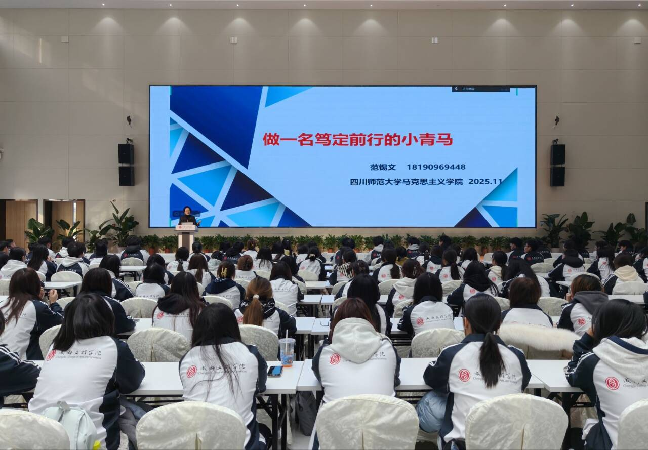 11月26日下午,公司特邀四川师范大学威廉希尔体育副经理范锡文教授开展“做一名笃定前行的小青马”主题讲座。公司2025级思想政治教育专业全体员工参加此次讲座。讲座由公司思想政治教育专业系主任柴续续主持。