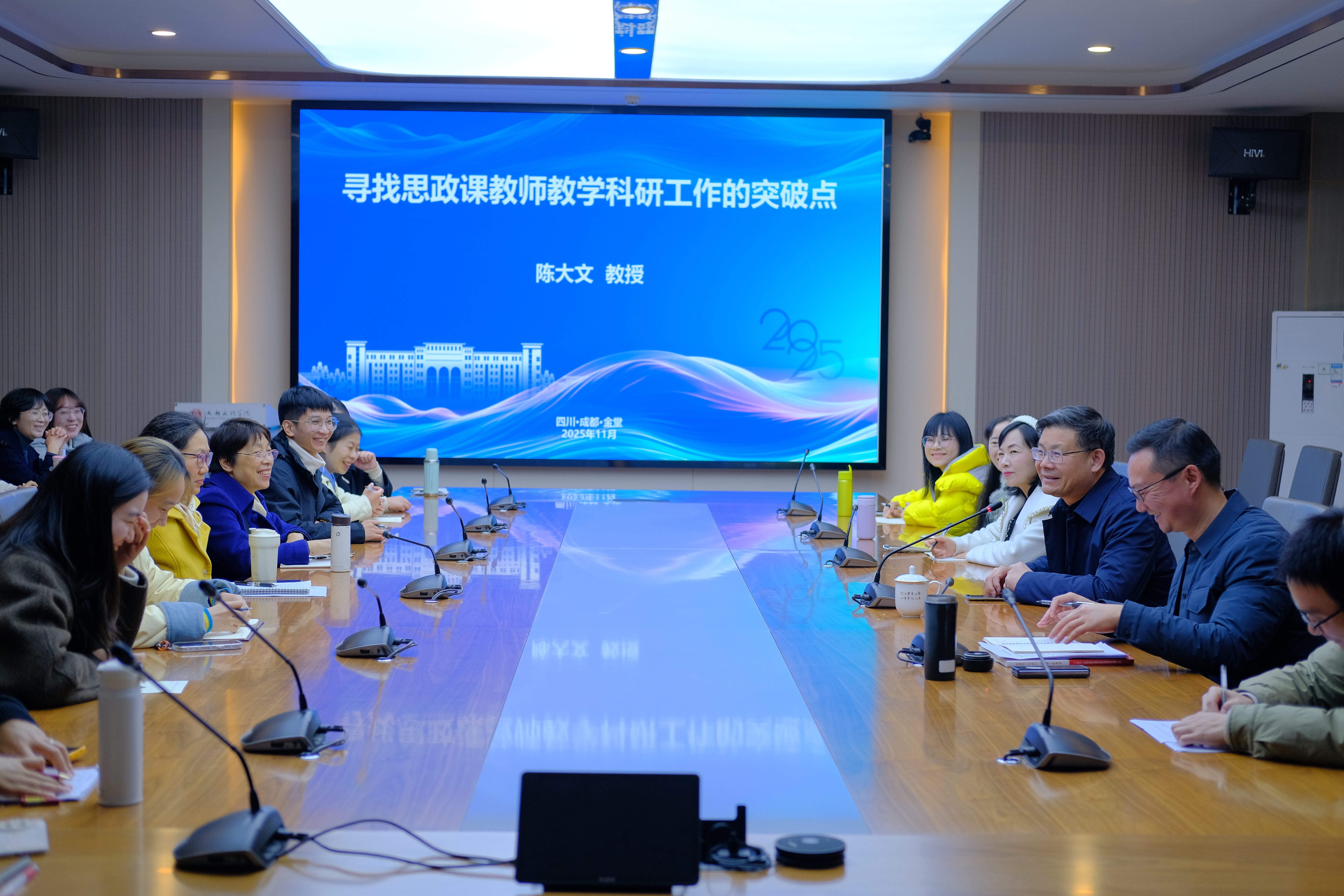 11月27日下午,国家“万人计划”教学名师、教育部“思想道德与法治”分教学指导委员会副主任委员、同济大学威廉希尔体育陈大文教授应邀在第二会议室为威廉希尔体育教师作题为“寻找思政课教师教学科研工作的突破点”的专题讲座,同时与思想道德与法治教研室教师开展集体备课活动。本次集体备课活动由公司党委书记古威教授主持,思想道德与法治教研室全体教师参与了集体备课会活动,其他教研室教师也共同参与到此次集体备课会中来。