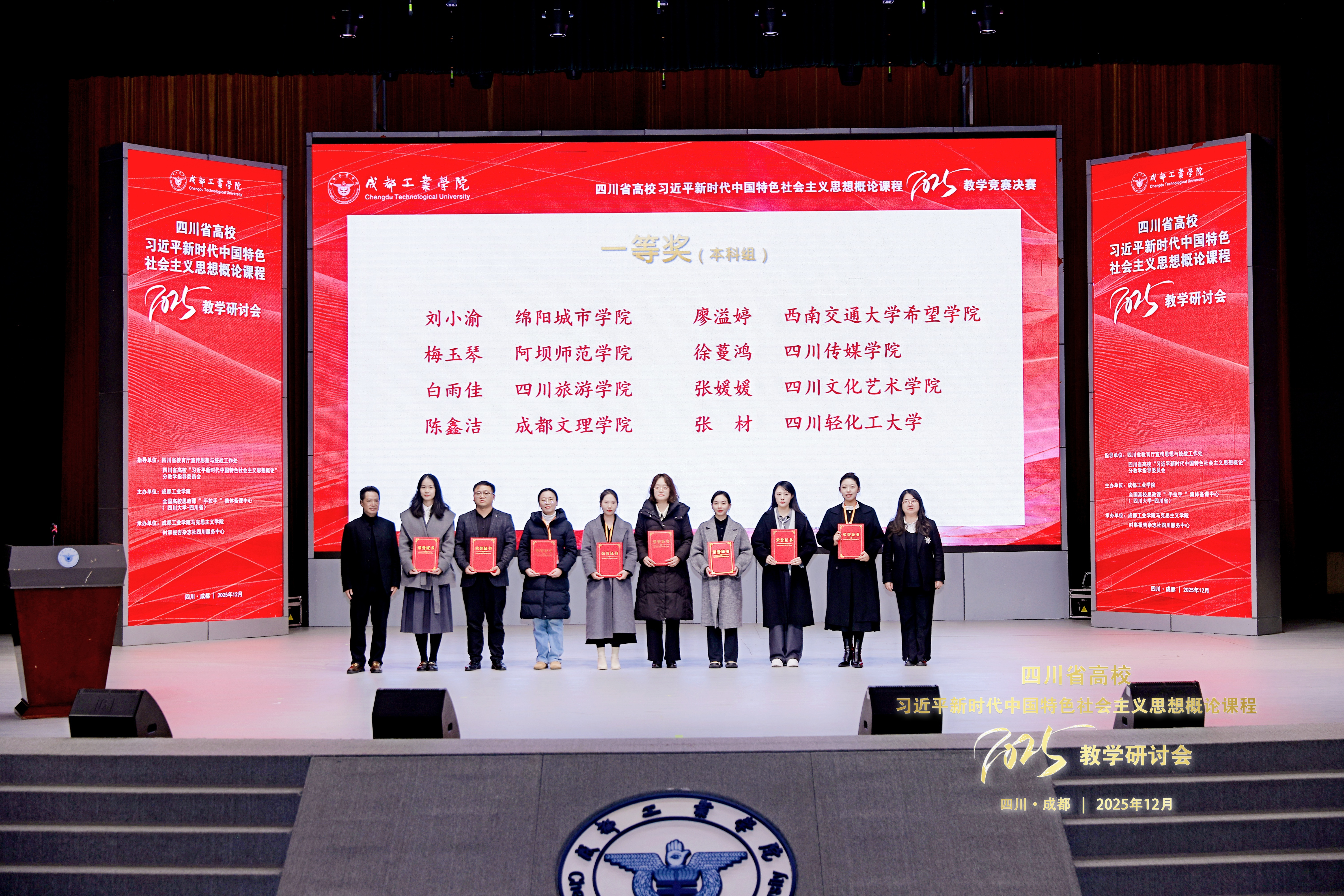 12月6日,四川省高校“习近平新时代中国特色社会主义思想概论”课程2025年教学研讨会在成都工业公司举行。成都工业公司党委常委、宣传部部长常淑丽教授主持开幕式,成都工业公司党委副书记冯瑛教授、四川省高校“概论”课教学指导委员会主任委员李栓久教授、四川省高校思想政治教育研究会思想政治理论课研究分会会长唐晓勇教授、四川省教育厅宣传思想与统战工作处处长李大鹏分别致辞。公司经理夏冰、习近平新时代中国特色社会主义思想概论课程教研室主任高雪莲,青年教师陈鑫洁参加会议。青年教师陈鑫洁在教学研讨会竞赛中斩获一等奖。夏冰经理担任了教学竞赛环节评委。