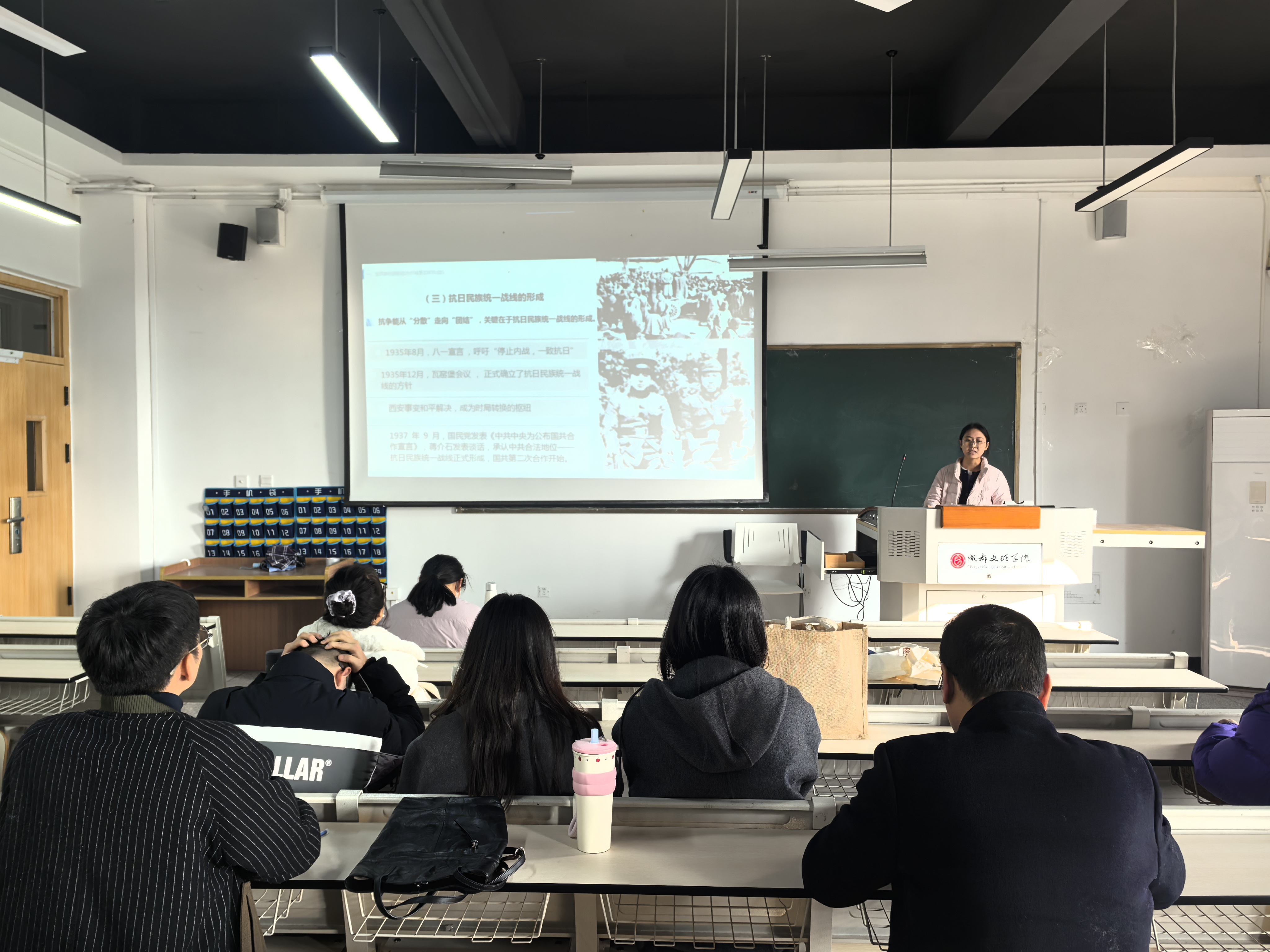 此次集体备课会首先由朱新蕊和沈子尧两位教师分别进行教学展示。朱老师主要围绕第六章内容进行分享,她以“民族危亡—奋起抗争—走向胜利”的逻辑顺序进行讲解,将重点聚焦于引导员工理解中国共产党为什么史中国人民抗日战争的“中流砥柱”。沈老师主要围绕第八章授课内容进行了教学分享,重点讲解了过渡时期总路线体现了社会主义工业化和社会主义改造的同时并举、紧密结合,体现了解放生产力与发展生产力、变革生产关系与发展生产力的有机统一,反映了历史的必然性。同时从“一五计划”到“十五五规划”的历史脉络,揭示从“完整工业体系”建构向“现代化产业体系”建设深化推进的历史趋势,引导员工深刻理解新中国为什么走上社会主义道路?又是怎样走上社会主义道路的?新中国走上社会主义道路对中国意味着什么?