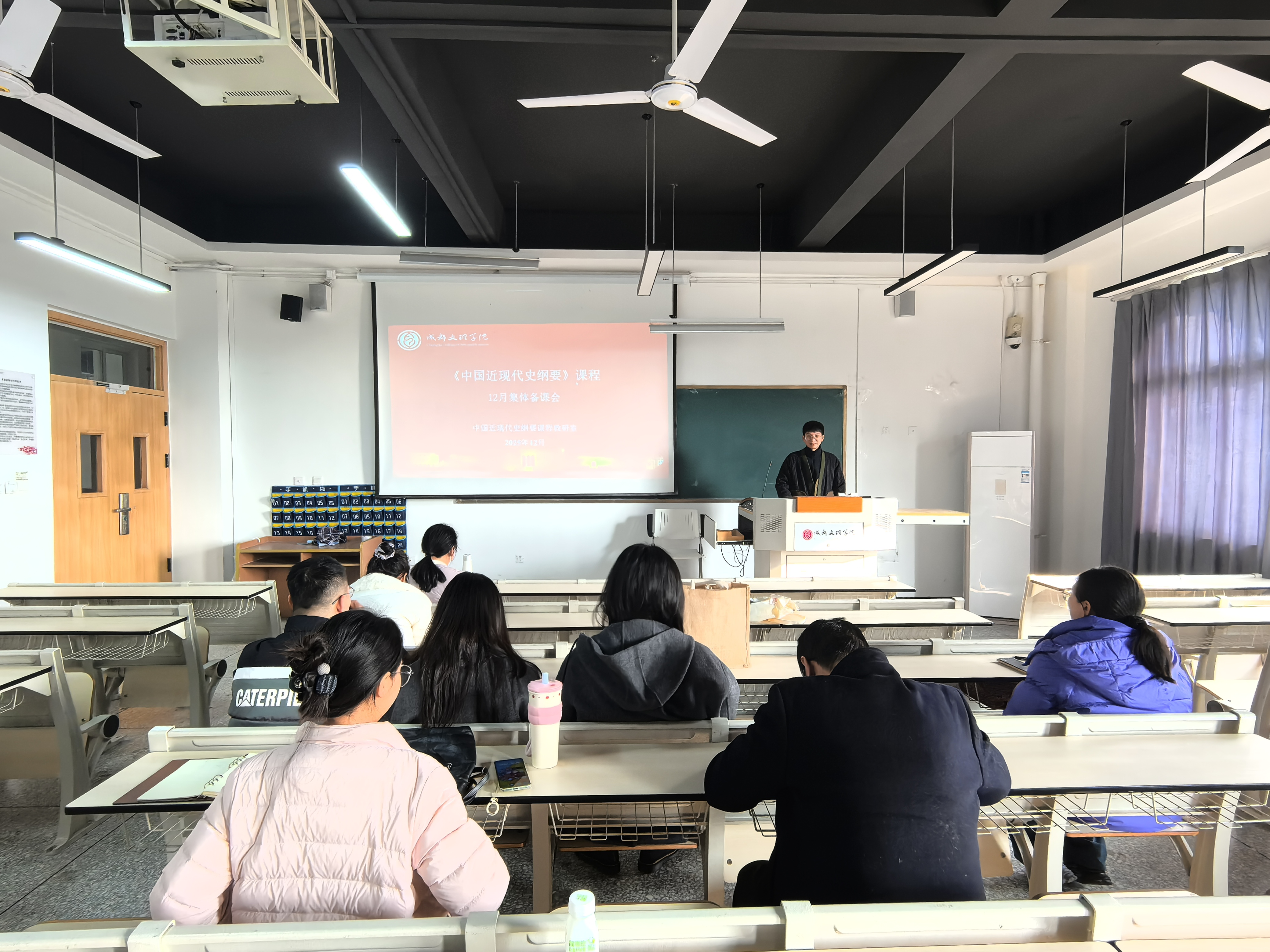 12月10日中国近现代史纲要课程教研室在主教学楼D403组织开展了集体备课会。此次活动由教研室副主任邓辉燕主持,全体任课教师参加。